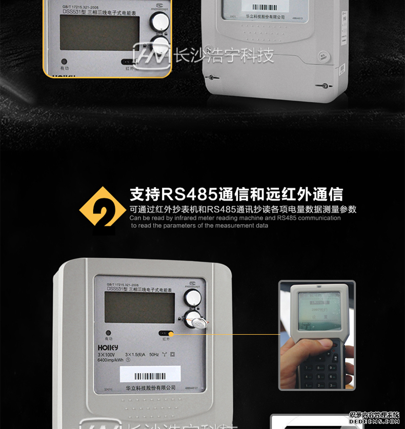 可通過按鍵、紅外掌機及RS485通訊口抄表,配合抄表系統,可抄讀電表的各項電量數據,支持DL/T645-1997多功能電能表通訊規約。 杭州華立DSS531三相三線電子式有功電能表