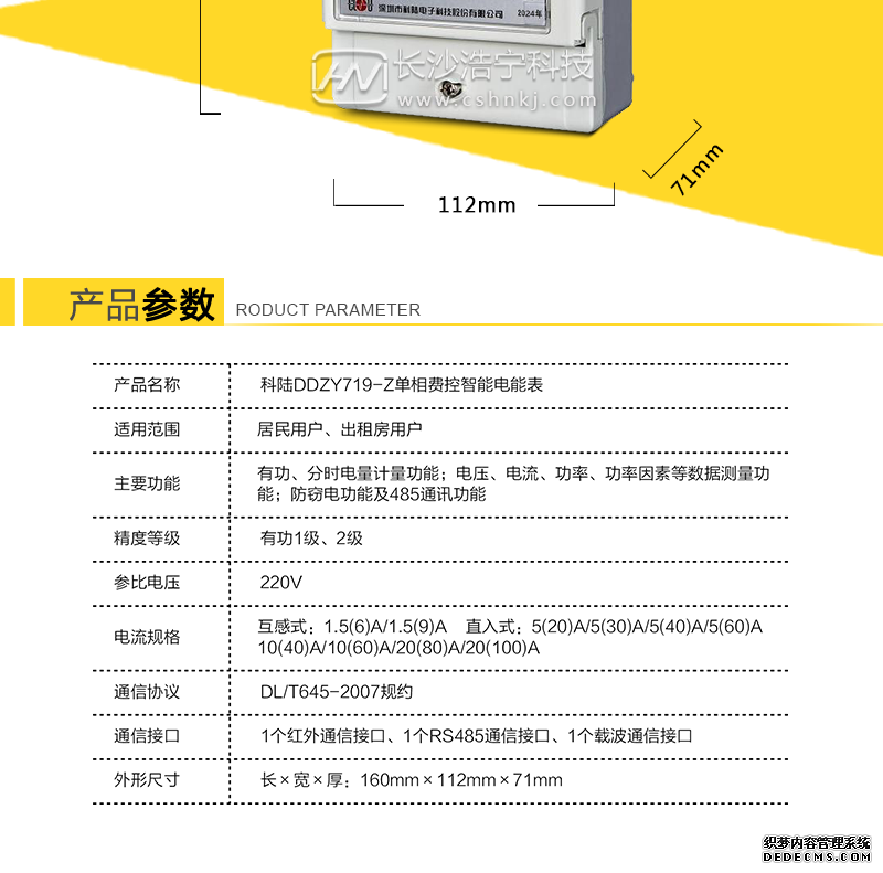 深圳科陸DDZY719-Z單相費控智能電表(載波)