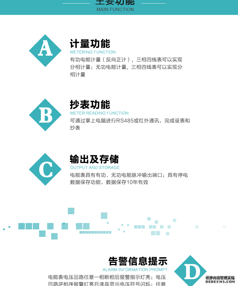 主要功能:有功,功率因素,有功功率,無功功能,視在功率,電壓,電流