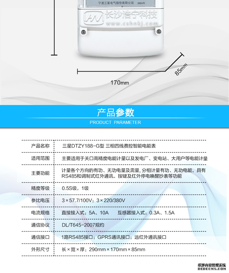 寧波三星DTZY188-G三相四線遠程費控智能電能表(無線)