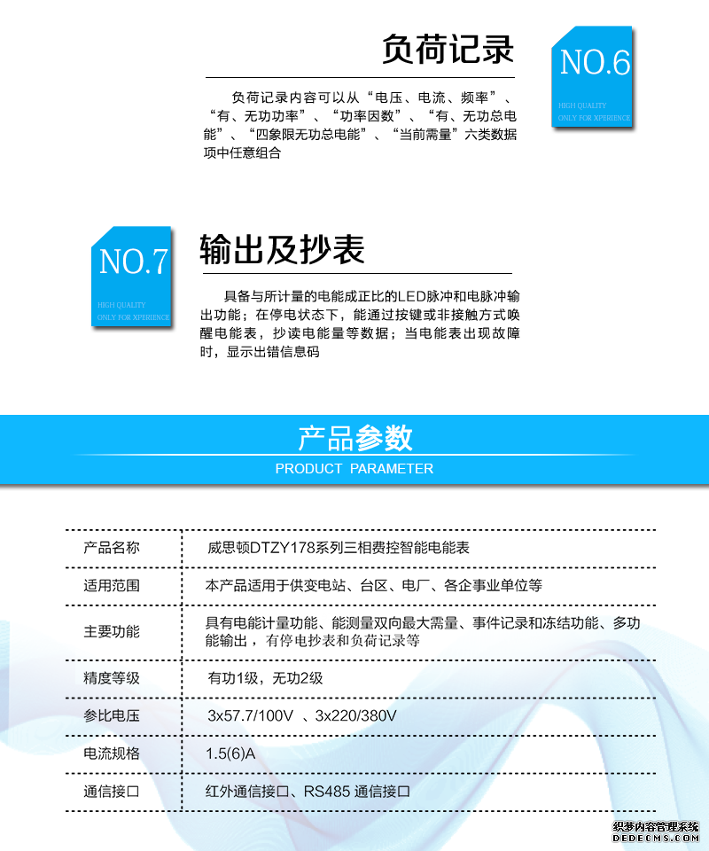 煙臺威思頓DTZY178系列三相費控智能電能表