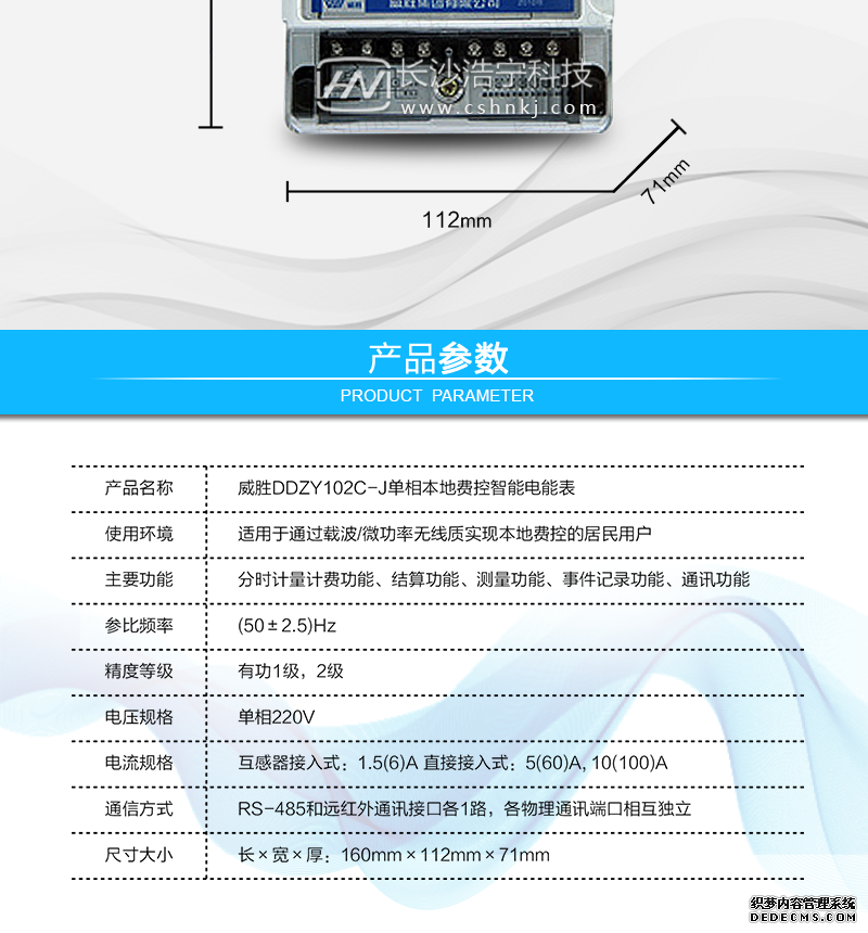 長沙威勝DDZY102C-J單相本地費控智能電能表(09標準)