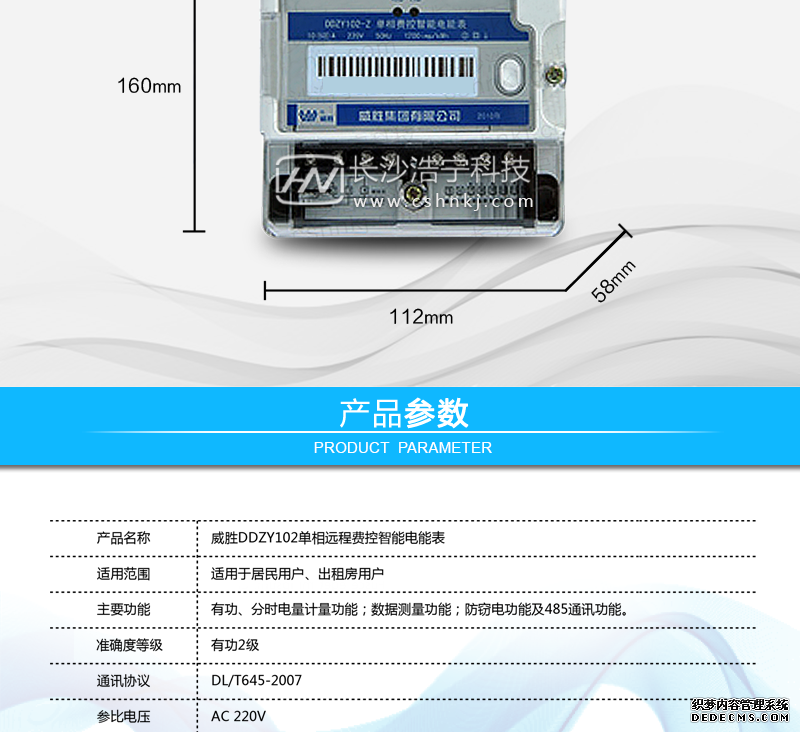 長(zhǎng)沙威勝DDZY102單相遠(yuǎn)程費(fèi)控智能電能表