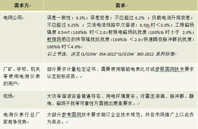 電表分為很多種,現在流行的電表就是智能電表。智能電表其最主要的核心就在于他獨有的計量芯片,計量芯片能夠準確的計量電量,計量芯片的好壞,就決定了該款智能電表的質量。 專用計量芯片從97年開始,經過多年不斷地餓算法優化,也是因為微電子技術的進步,智能電表的芯片已相當成熟。而國家對于芯片的計量要求也是非常嚴格的,具體看下圖: 對于智能電表芯片的選擇,其實很簡單,這取決與你的使用環境,不同的環境對芯片的技術要求也是不一樣的。