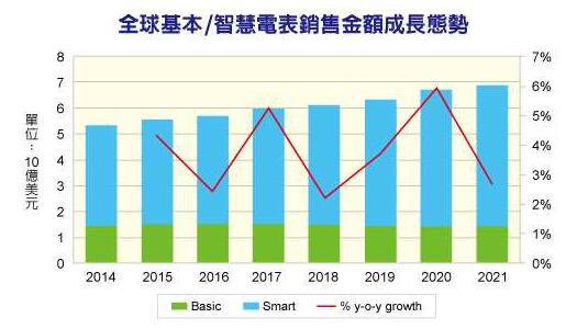 IHS估計,2015年全球智能電表出貨量已突破1億臺大關,硬件銷售營收規模則達到40億美元。2015年全球最大的智能電表市場是中國,其基本電表跟智能電表出貨量占全球總電表出貨量近5成。日本的電力業者為了搶在電業開放之前打造更智慧化的電力基礎建設,在2015年也安裝了數百萬臺智能電表。北美跟歐洲的智能電表出貨量在過去12個月表現也相當穩健。IHS預期,到了2021年,全球電表銷售金額將逼近70億美元。
