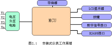 本儀表系列采用了高精度的采樣計量,高速的MCU進行數據處理,豐富的液晶顯示屏,非易失存儲器。具體結構如圖2.1所示。