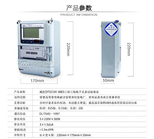 以下是威勝電表DTSD341-MB3三相四線多功能電能表: