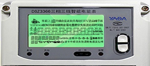 廣東雅達DSZ3366三相三線智能電能表, 主要功能總、有無功,分時分相電能計量,電壓電流功率因素、相角、相位等數據測量功能,防竊電功能及485通訊功能。以下簡單介紹這款多功能電能表液晶屏上出現的符號代碼代表什么含義?