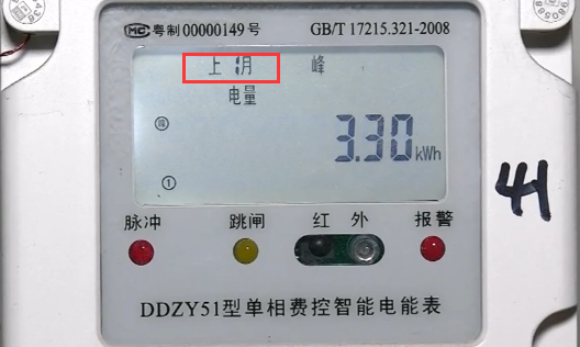 同時電表還會顯示上兩個月的用電情況,在屏幕左上端會有顯示時間的顯示