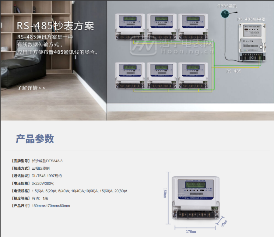 威勝三相四線電表DTS343? :有功計量(可選峰谷功能和拉閘功能,配置不一樣價格不一樣,價格從260-480之間)、RS485 通信的場所,涵蓋工業生產、商業運營及公共設施等領域,可精準滿足有功計量與數據通信需求。?
